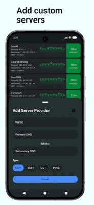 「DNS Speed Test」为您提供业界领先的全面DNS性能测试方案。无论是传统的UDP,还是更注重隐私与安全的DNS-over-HTTPS (DoH) 和DNS-over-TLS (DoT) 协议,它都能进行深入检测,助您发现最理想的配置。核心功能亮点包括:对全球主流DNS提供商的速度基准测试,支持添加并检测您自有的自定义DNS服务器。实时的性能图表清晰呈现响应时间,配合可靠性评分,让决策更科学。直观的Material Design界面设计,确保了所有用户都能轻松上手。我们已预载了Google DNS、Cloudflare、Quad9、AdGuard等众多备受信赖的DNS服务商,立即掌控您的网络速度与隐私吧!