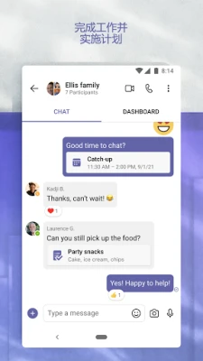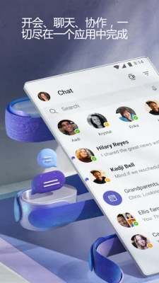 Microsoft Teams 是一款融合个人与工作沟通的综合平台,助您轻松维系人际网络。无论您身处何地,都能与亲友或同事展开顺畅交流。从一对一私聊到活力十足的群组对话,您可以通过@提及迅速吸引关注,更可利用丰富的 GIF、表情符号及消息动画,让每一次互动都充满乐趣与个性。快速发起高清视频会议,通过分享链接或日历邀请,即刻召集任何人加入,确保每次重要会面都安全无忧,如同您从未离开过。